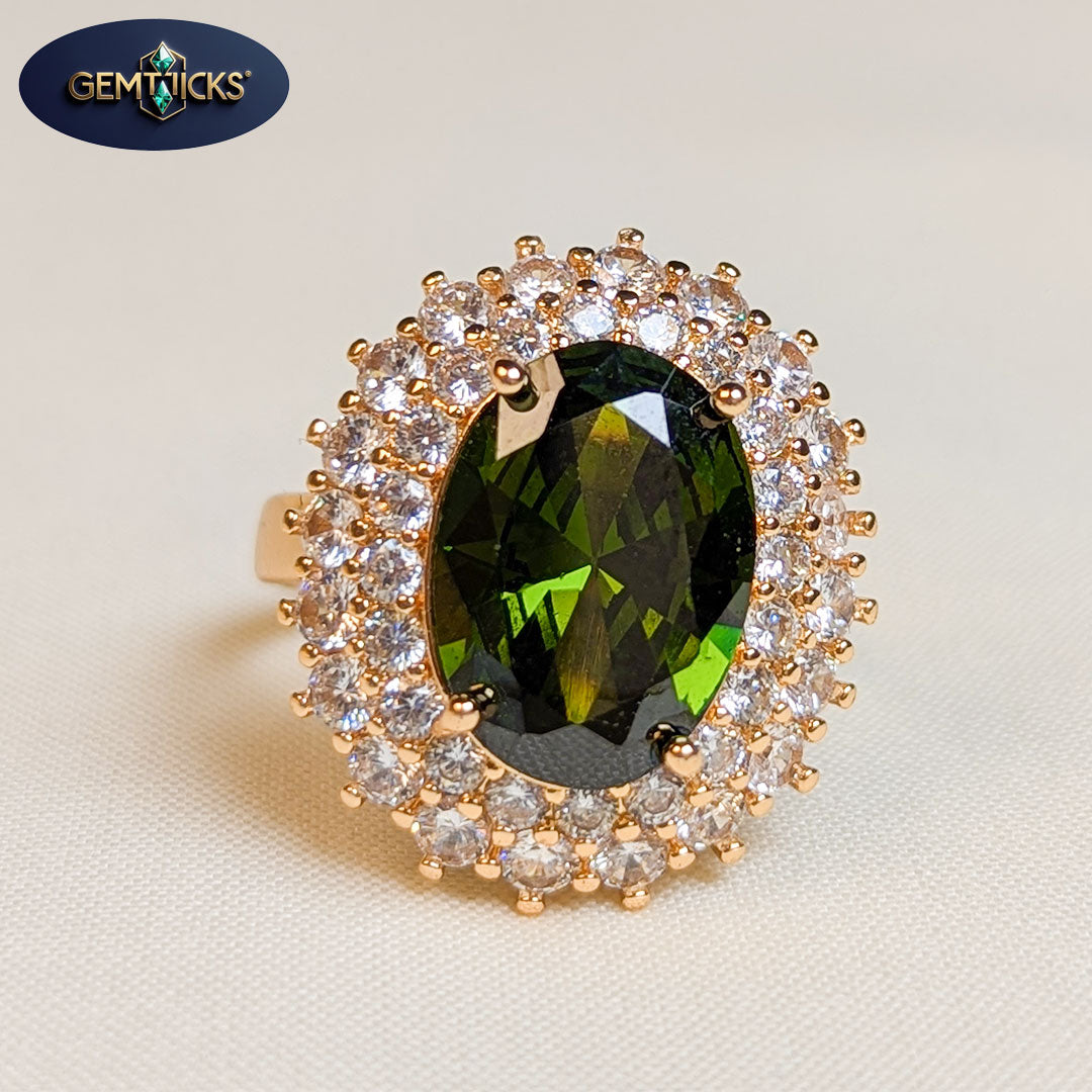 سنٹر اسٹون: بیضوی شکل کا سبز کرسٹل نگینہ، شاہی انداز میں