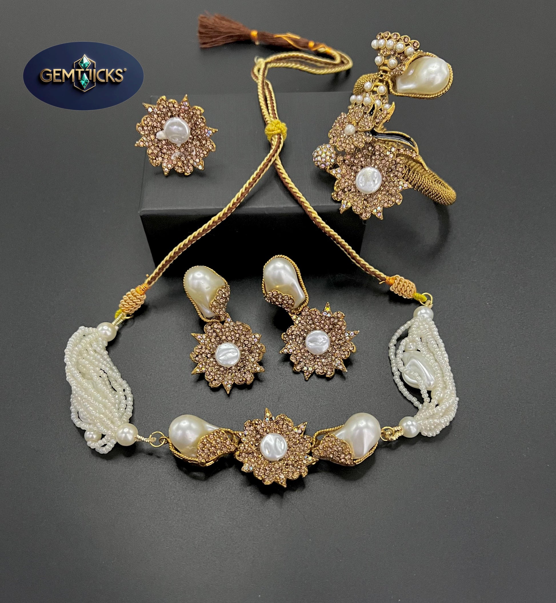 Turkish Mother of Pearl Jewellery Set – Necklace, Earrings, Ring & Bracelet | GemTicks